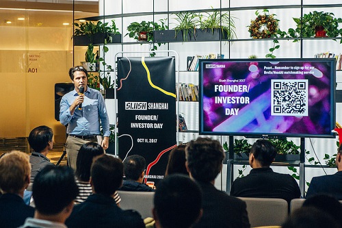 Một nhà sáng lập startup đang thuyết trình trong buổi kết nối các doanh nhân khởi nghiệp và những nhà đầu tư thuộc khuôn khổ chương trình khởi nghiệp lớn nhất hành tinh Slush tại Phần Lan. Ảnh: Slush Flick |