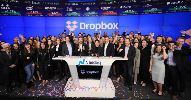Dropbox trong ngày đầu IPO. Ảnh:Twitter