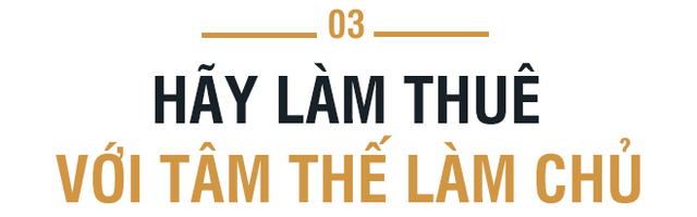 Còn tất nhiên khởi nghiệp không phải câu chuyện dành cho tất cả. Mỗi người có sứ mệnh khác nhau, đâu nhất thiết ai cũng phải ra làm chủ. Các bạn có thể làm thuê với tâm thuế thoải mái, cố gắng cống hiến cho doanh nghiệp,...vậy là bạn đã góp phần phát triển xã hội. Đâu nhất thiết phải nghĩ đến câu chuyện làm chủ.