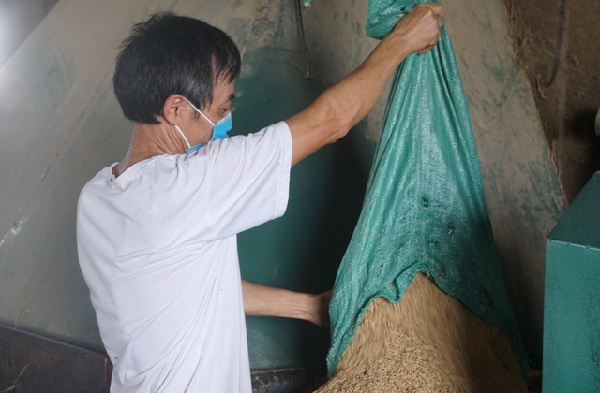 Vỏ trấu sau khi thu mua về sẽ được xử lý và đưa vào máy ép.