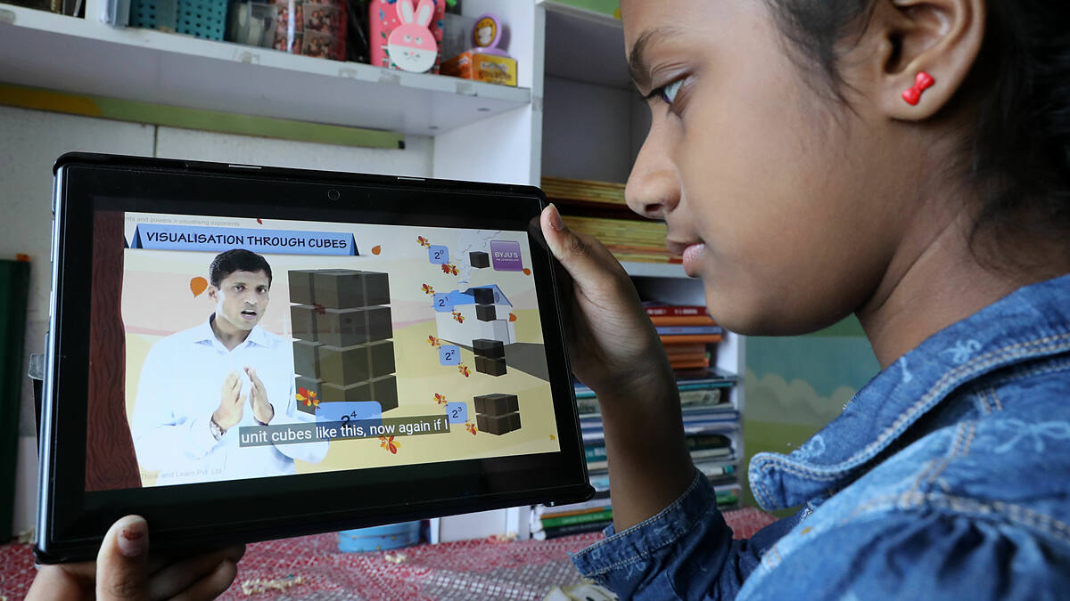 Một học viên tham gia học trực tuyến với ứng dụng Byju (Ấn Độ). Ảnh: Kosaku Mimura/Nikkei Asia. |