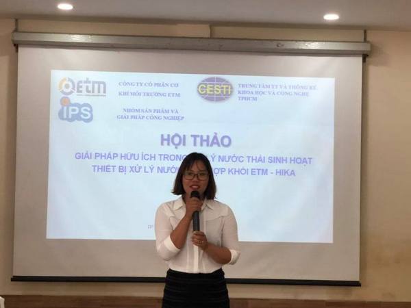 Bà Nguyễn Diệu Linh - Giám đốc chi nhánh công ty cổ phần cơ khí môi trường ETM giới thiệu về giải pháp xử lý nước thải ETM-hika.
