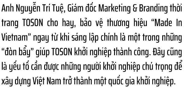Khởi nghiệp từ lòng yêu nước, những người sáng lập thương hiệu TOSON quyết tâm bảo vệ thương hiệu “Made in Vietnam” đến cùng.