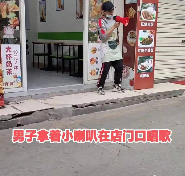 Người đàn ông muốn tiếp tục kinh doanh nhưng không đủ vốn để vận hành cửa hàng. Sau đó, anh ta có ý định chuyển nhượng quán nhưng không ai chịu ký hợp đồng. Cuối cùng, người đàn ông chọn cách thu hút khách hàng mới bằng cách tự mình đứng trước quán đồ ăn, hát to vào loa để thu hút chú ý từ người đi ông.
