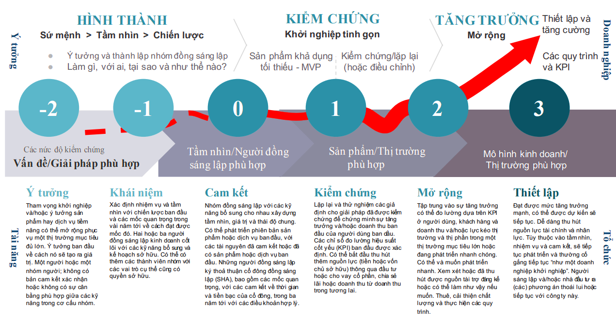 Bên cạnh Phác Đồ Khởi Nghiệp Theo Đường Cong J, quá trình phát triển của doanh nghiệp khởi nghiệp được Cục Thông tin Khoa học và Công nghệ quốc gia (2018a) mô tả như sau: