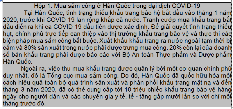 Ngược lại, ở các quốc gia có năng lực công nghiệp mạnh, nguồn cung các mặt hàng y tế thiết yếu phục hồi nhanh chóng. Các nhà cung cấp trong nước nhìn chung có thể giải quyết tình trạng thiếu hụt ban đầu và đảm bảo khả năng tiếp cận bình đẳng đối với khẩu trang, sản phẩm vệ sinh cá nhân và máy thở. Việc sử dụng chiến lược các công cụ chính sách công nghiệp, bao gồm mua sắm công, đóng vai trò quan trọng trong việc đảm bảo khả năng tiếp cận ổn định nguồn cung cấp y tế trong thời kỳ đại dịch. Hàn Quốc là một ví dụ điển hình về nền kinh tế đã quản lý thành công điều này (xem Hộp 1) và là nền kinh tế có sự phối hợp rõ ràng giữa chính sách công nghiệp và y tế.