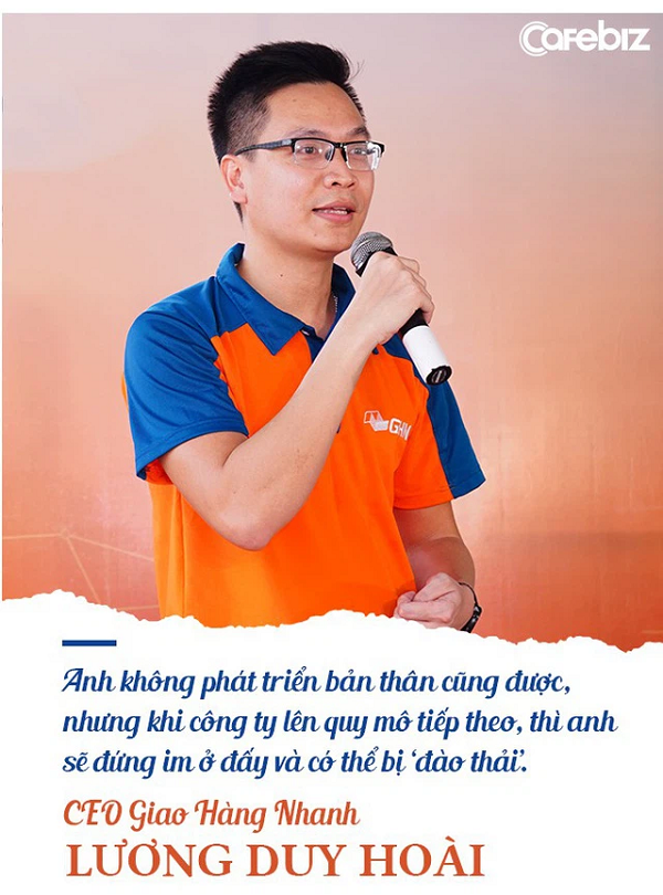 Cũng thời điểm đó, công ty đón chào một vài nhân sự ở cấp C-level, những chuyên gia thứ thiệt ở vài ngành nghề. Họ nói với Ban lãnh đạo Giao Hàng Nhanh là công ty đang có vấn đề, nhìn 2 số thôi thì còn làm được, 100 số thì không thể.