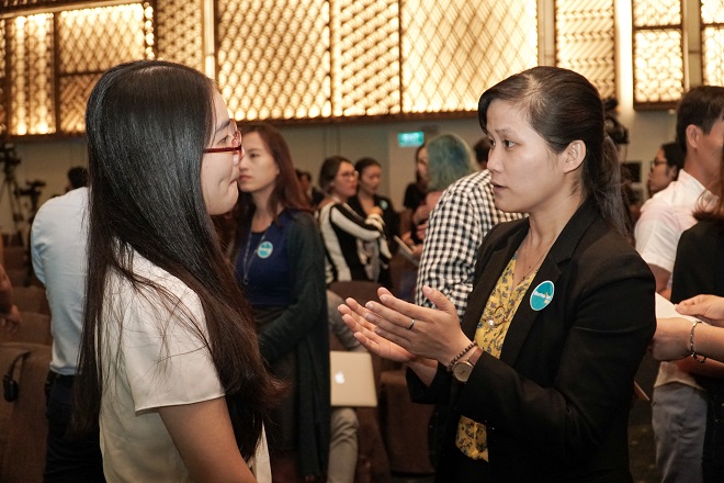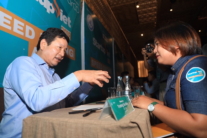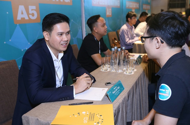 Các startup tự do trao đổi, thảo luận kinh nghiệm cùng nhau trước khi tham gia vào các phiên speed-dating cùng các chuyên gia, nhà đầu tư đến từ các công ty, tập đoàn lớn tại Việt Nam. |