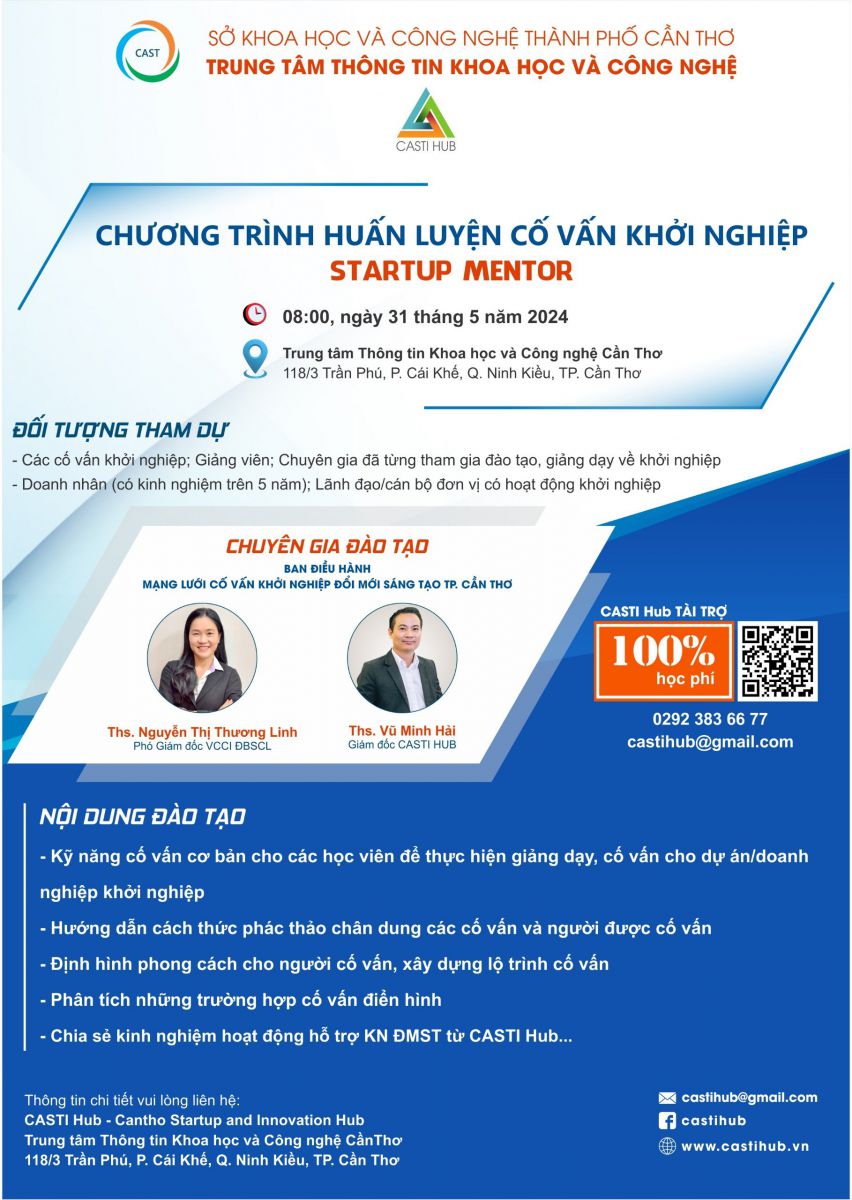Với mục tiêu đó, Chương trình Huấn Luyện Cố vấn Khởi nghiệp (Startup Mentor) đã được tổ chức tại Trung tâm Thông tin Khoa học và Công nghệ TP. Cần Thơ, mang đến cơ hội cho các cố vấn, giảng viên thuộc lĩnh vực khởi nghiệp đổi mới sáng tạo.