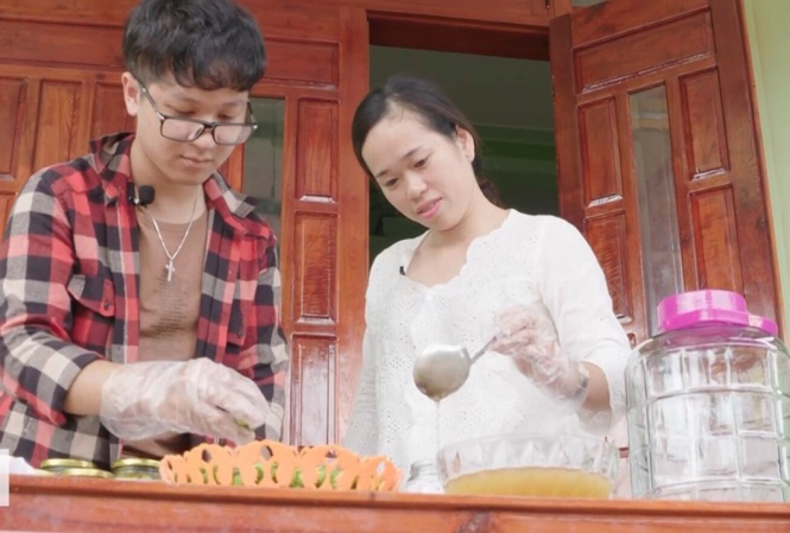 Cô Tâm (bìa phải) và cộng sự chế biến sản phẩm “Mật ong chanh rừng Mẫu Sơn”; Ảnh Duy Chiến
