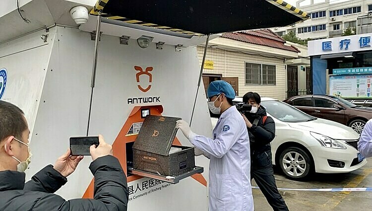 Đầu năm nay, khi Covid-19 bắt đầu lan rộng tại Trung Quốc, Công ty Antwork thực hiện đợt vận chuyển vận tư y tế đầu tiên theo yêu cầu của Bệnh viên nhân dân Xingchang tại Thiệu Hương, tỉnh Chiết Giang. Khi muốn gửi bệnh phẩm đi xét nghiệm, bác sĩ sẽ đến nơi hạ cánh của Antwork. Sau vài thao tác trên điện thoại, một chiếc máy drone sẽ cất cánh, mang theo hộp nhỏ đựng bệnh phẩm, bay quãng đường hơn một km để đến Trung tâm kiểm nghiệm sức khỏe cộng đồng địa phương.