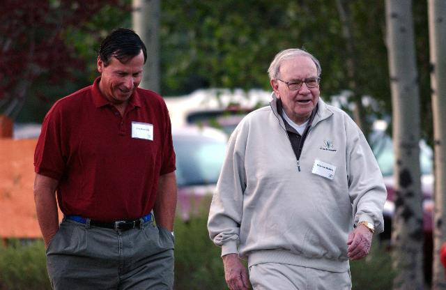 Jim Kenndy nói chuyện với Warren Buffet tại hội nghị đầu từ hàng năm, tháng 07 năm 2004, cùng với cố vấn của Buffet là Byron Trott. Nguồn ảnh: Matthew Staver/ Bloomberg