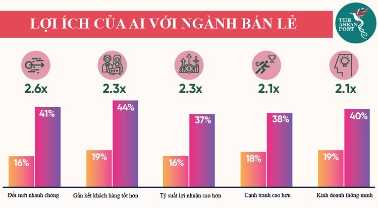 Báo cáo của Microsoft châu Á và tập đoàn dữ liệu quốc tế IDC cho thấy với việc áp dụng AI vào hoạt động, các công ty bán lẻ đã cải thiện trung bình 16-29% 5 vấn đề chính của ngành gồm sự tham gia của khách hàng, kinh doanh thông minh, tỷ suất lợi nhuận, khả năng cạnh tranh và đổi mới. Dự kiến, vào đầu năm 2021, họ sẽ cải thiện thêm 37-44%.