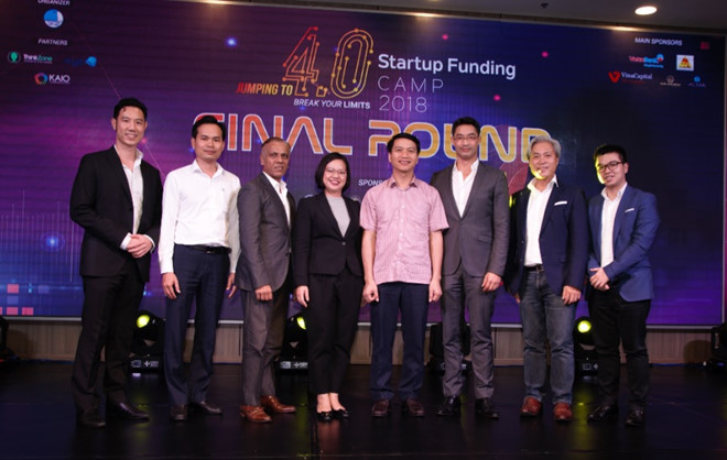Đại diện ban tổ chức và các nhà tài trợ trong chương trình Startup Funding Camp 2018.