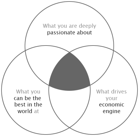 Những công ty tuyệt vời xây dựng chiến lược dựa trên điều mà Collins gọi là sự am hiểu sâu sắc 3 yếu tố then chốt. Collins giải thích 3 yếu tố này bằng 3 vòng tròn. Những công ty tuyệt vời thấu hiểu điều này và đưa ra khái niệm đơn giản và rõ ràng, dễ dàng tiếp thu và áp dụng. Khái niệm đơn giản này dẫn lối cho những nỗ lực của họ