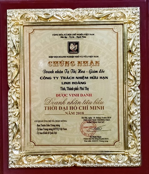 Bảng vàng vinh danh Doanh nhân tiêu biểu thời Hồ Chí Minh năm 2018 của Doanh nhân Tạ Thị Hoa