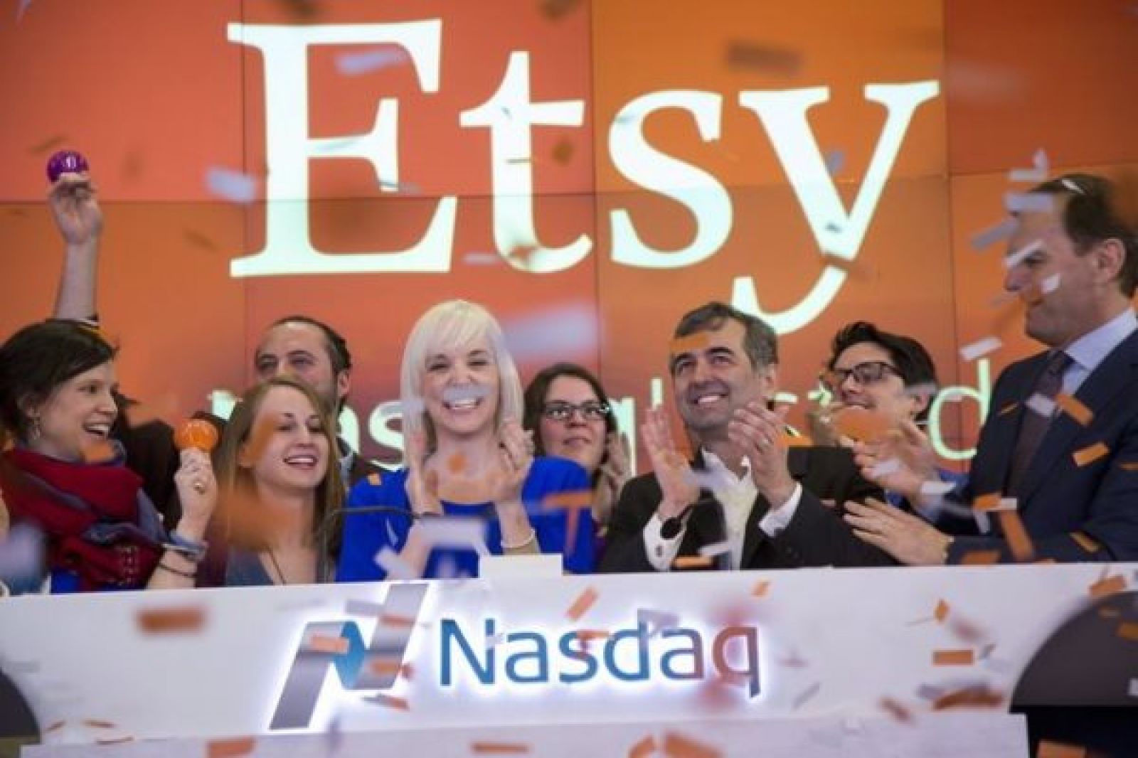 Cổ phiếu của startup thương mại điện tử Esty được chào mừng trong phiên giao dịch đầu tiên trên sàn chứng khoán Nasdaq ở New York hồi tháng 4-2015. Ảnh: Bloomberg