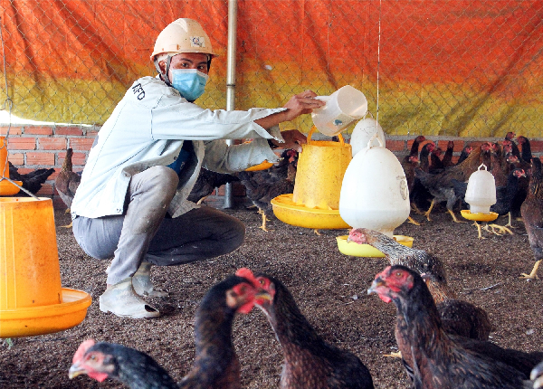 Anh Chamaléa Đất chăm sóc đàn gà chuẩn bị xuất chuồng.