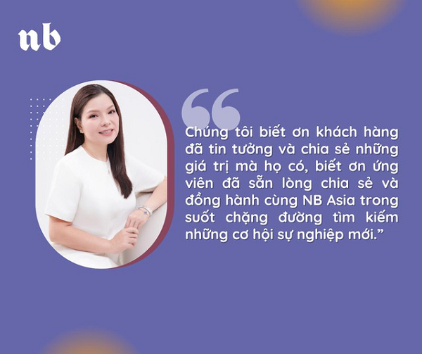 Bà Huệ Nhi bày tỏ: "Đối với NB Asia, sự đồng hành của khách hàng đã tạo nên cơ hội để chúng tôi có thể kiên định với lí tưởng về một doanh nghiệp dịch vụ tử tế. Đội ngũ NB Asia luôn tin tưởng vào giá trị và sức mạnh của lòng biết ơn, vì sự biết ơn giúp chúng tôi trân trọng mọi điều tích cực và tốt đẹp mà các khách hàng và ứng viên mang đến cho NB Asia trong những cuộc giao tiếp hàng ngày. Chúng tôi biết ơn khách hàng đã tin tưởng và chia sẻ những giá trị mà họ có, biết ơn ứng viên đã sẵn lòng chia sẻ và đồng hành cùng NB Asia trong suốt chặng đường tìm kiếm những cơ hội sự nghiệp mới".