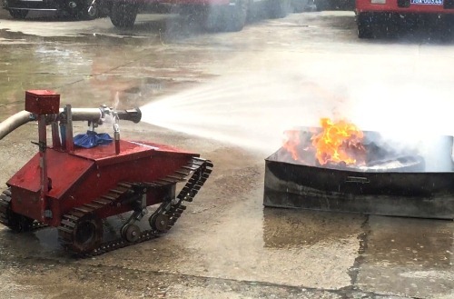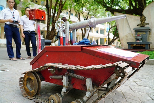Robot được điều khiển từ khoảng cách xa 500 m, giúp chữa cháy trong phạm vi rộng. Ảnh: Linh Phạm