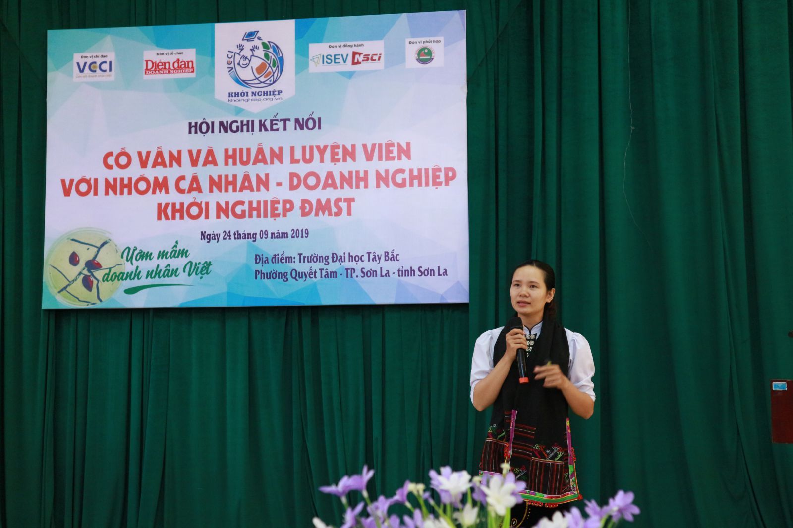 Cùng với đó, ThS. Đặng Thị Huyền Mi - Giám đốc Công ty Taidam Taste, giảng viên Khoa Kinh tế, Trường Đại học Tây Bắc đã trình bày tham luận: Sự cần thiết của mạng lưới cố vấn hoạt động khởi nghiệp của thanh niên tại tỉnh Sơn La. Bà Đặng Thị Huyền Mi khẳng định, mong muốn tỉnh Sơn La nói chung và Trường Đại học Tây Bắc nói riêng cần xây dựng một mạng lưới cố vấn khởi nghiệp để các bạn trẻ có cơ hội tiếp cận mạng lưới kinh doanh, học hỏi kiến thức, kinh nghiệm, tạo động lực và truyền cảm hứng, cải thiện năng lực ra quyết định dẫn tới thành công.