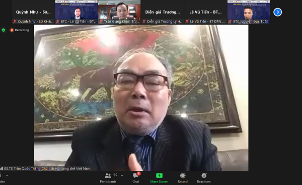 GS.TS Trần Quốc Thắng – Chủ tịch Hội Sáng chế Việt Nam, Nguyên Thứ trưởng Bộ Khoa học và Công nghệ phát biểu khoa mạc hội thảo