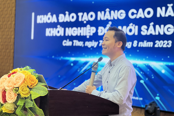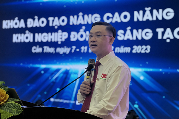 Phát biểu khai mạc tại khóa đào tạo Bà Lê Nguyễn Trung Khanh – Phó Giám đốc Trung tâm Thông tin Khoa học và Công nghệ đã chia sẻ các hoạt động hỗ trợ khởi nghiệp đổi mới sáng tạo do Sở Khoa học và Công nghệ thành phố cần Thơ.