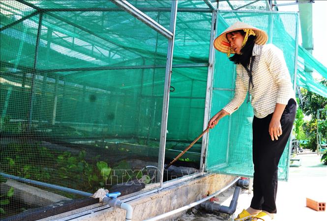 Quy trình nuôi cà cuống theo mô hình Aquaponist của chị Nguyễn Thị Lan mang lại hiệu quả kinh tế cao.