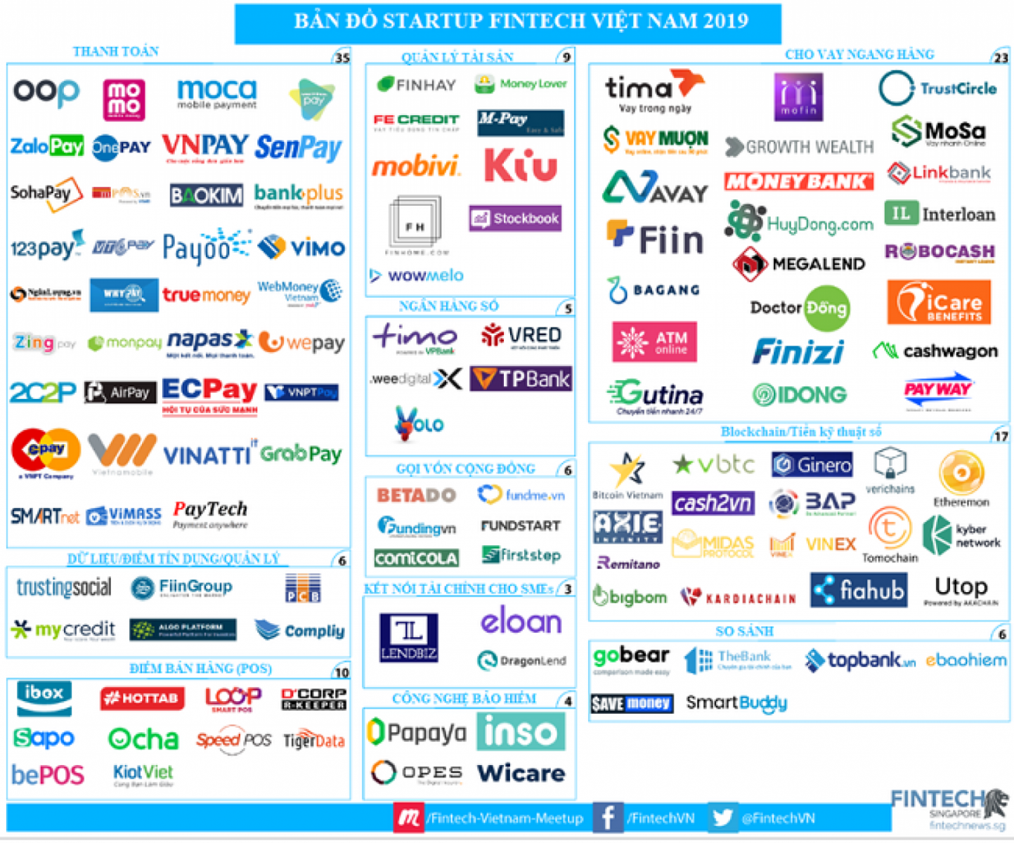 Trong đó, 2 lĩnh vực lớn mạnh nhất là Ví điện tử và Cho vay ngang hàng với số lượng thành viên lần lượt là 28 (được cấp phép, trừ NAPAS) và hơn 70 (không chính thức). Tuy nhiên, Việt Nam hiện tại vẫn đi sau các nước trong khu vực Đông Nam Á với độ phủ của các dịch vụ tài chính - ngân hàng chính thức chỉ ở 59% so với 86% của Thái Lan và 92% của Malaysia (Báo cáo của Solidiance 5/2018).