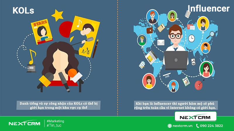 Ngược lại, Influencer là những cá nhân có khả năng ảnh hưởng mạnh đến hành vi mua sắm và thái độ của người theo dõi, phần lớn thông qua hoạt động trên mạng xã hội như Instagram, TikTok, YouTube hoặc Facebook. Influencer có thể không cần là chuyên gia hay người nổi tiếng truyền thống. Sức ảnh hưởng của họ phần lớn đến từ tính gần gũi, cá tính, khả năng kết nối và xây dựng cộng đồng theo dõi trung thành. Influencer có thể là một người yêu thích làm đẹp, một blogger ẩm thực, một game thủ nổi tiếng hay thậm chí là một sinh viên biết cách kể chuyện thú vị. Sự phát triển của nền tảng số đã mở ra cơ hội cho bất kỳ ai có nội dung hấp dẫn đều có thể trở thành Influencer. Vì thế, khái niệm này đa dạng và linh hoạt hơn nhiều so với hình ảnh KOL truyền thống.