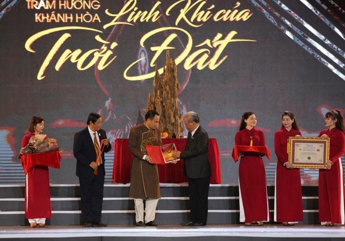 Ông Nguyễn Văn Tưởng – Chủ tịch công ty Trầm hương Khánh Hòa – nhận bằng xác lập kỷ lục Bảo tàng Trầm hương đầu tiên ở Việt Nam, ngày 30/4.