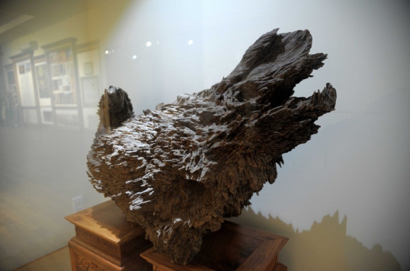 Những khối kỳ nam, trầm độc lạ tại bảo tàng Trầm hương Khánh Hòa. (Ảnh: Khải An)