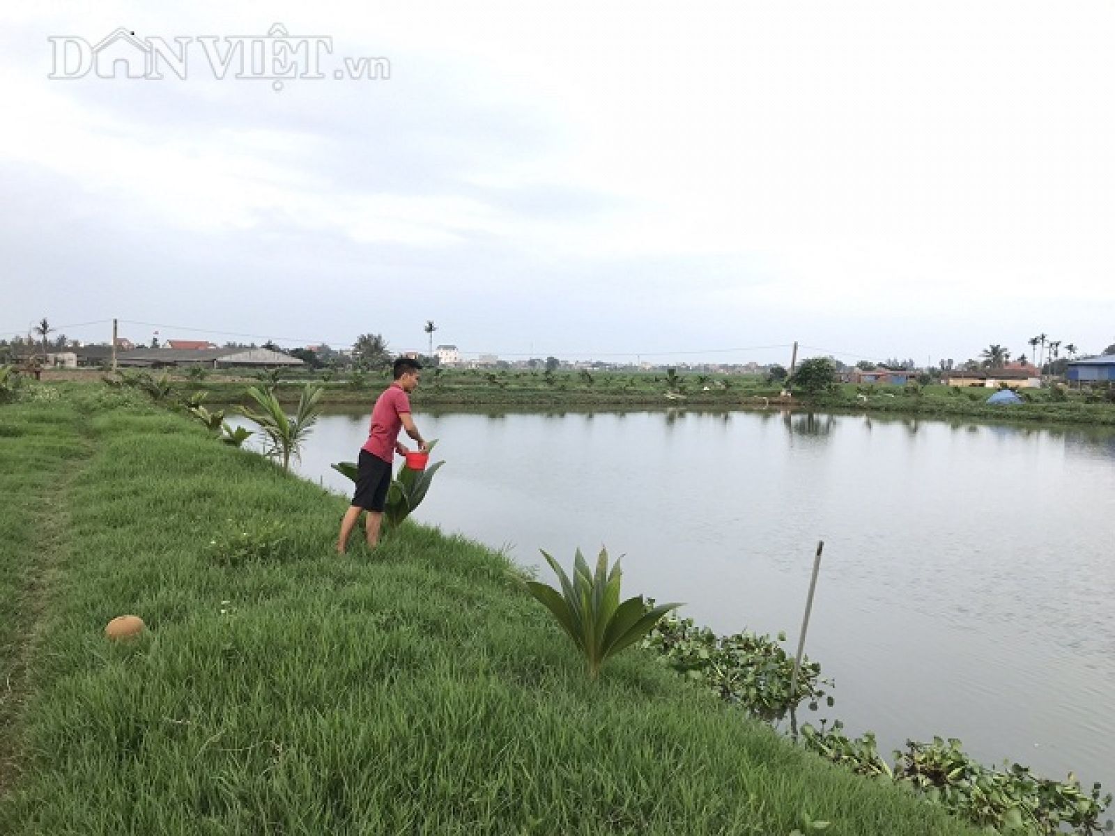 Để có đất mở trang trại nuôi cá cảnh, anh Lực mạnh dạn thuê 10 mẫu đất trồng lúa kém hiệu quả của thôn Kỳ Sơn để cải tạo thành ao nuôi cá.