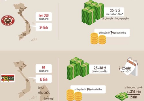 Đó cũng là một trong những lý do, các chuỗi như Highlands, Cộng, Aha, chi phí đầu tư ban đầu (gồm cả một tháng thuê mặt bằng) có thể lên tới 3-5 tỷ đồng do họ có yêu cầu khắt khe hơn về vị trí cửa hàng. Trong khi ở một số chuỗi khác, chi phí ban đầu có thể cao nhất 1,2-,1,5 tỷ đồng.