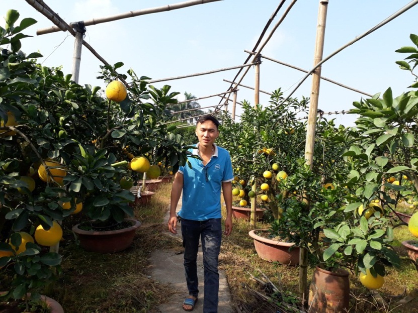Không chỉ phát triển nghề trồng bưởi Diễn vốn có của gia đình, Thanh Lâm còn thuê thêm đất để mở rộng nhà vườn. Ngoài cung cấp bưởi ăn quả cho thị trường, anh dành sự chăm chút cho các chậu bưởi cảnh để đáp ứng thị hiếu ngày càng cao của người tiêu dùng.
