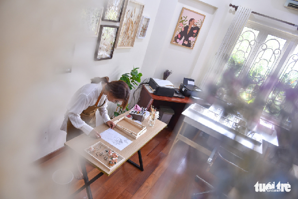 Học kinh doanh và đi làm một thời gian nhưng thấy không hợp, chị Trần Thị Phương Trinh (27 tuổi, Q.Phú Nhuận, TP.HCM) chuyển hướng sang nghiên cứu và kinh doanh tranh hoa lồng kính thủ công.