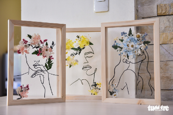 Các sản phẩm dòng tranh hoa 3D dùng để trang trí - Ảnh: Ngọc Phượng
