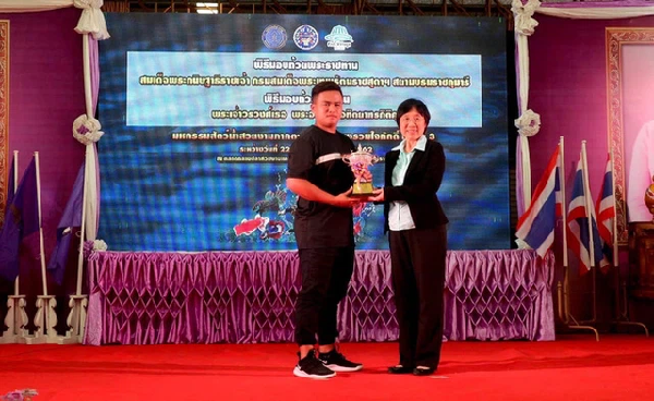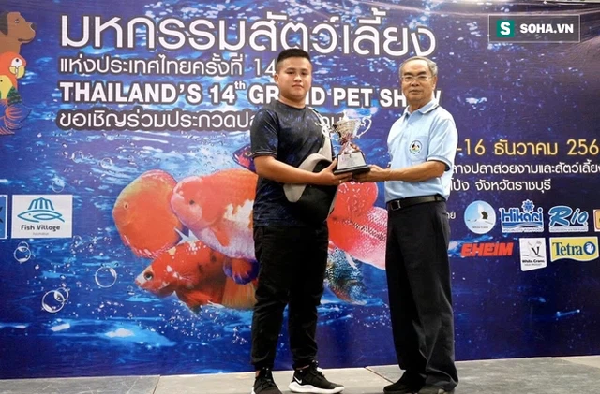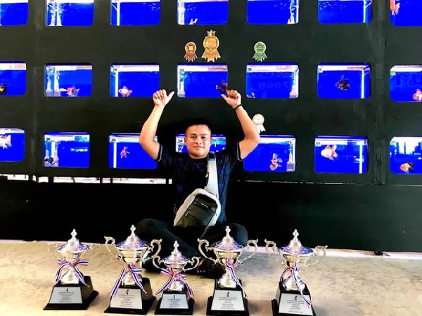 Thắng đoạt cúp giải thưởng trong một cuộc thi về cá vàng ở Thái Lan.
