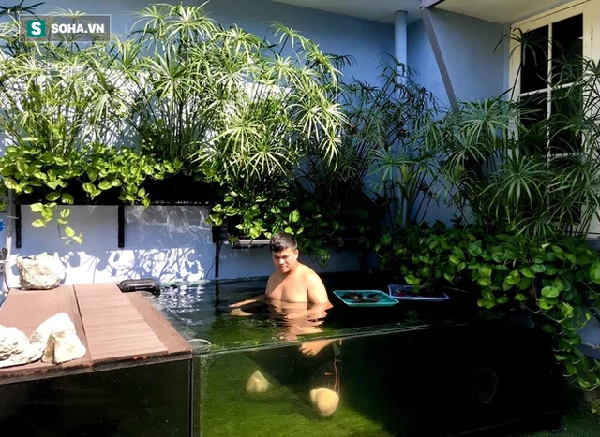 2 tầng sân thượng của nhà Thắng đều biến thành hồ nuôi cá.