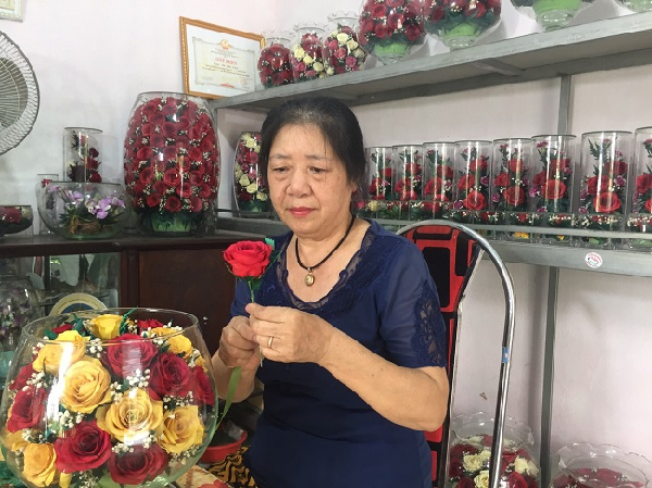 “Tôi mang đi chào hàng mà ai cũng lắc đầu bởi mỗi bông hoa hồng bất tử tôi bán 160.000 đồng, giá quá cao lúc bấy giờ. May mắn khi tôi tìm đến một cửa hàng bán đồ nội thất nhập khẩu, để lại giá 90.000 đồng/bông và nhờ họ bán giúp với giá nào tùy họ. Chỉ sau một tháng, toàn bộ số hoa tôi để lại đã có người mua hết”, bà Việt nói.