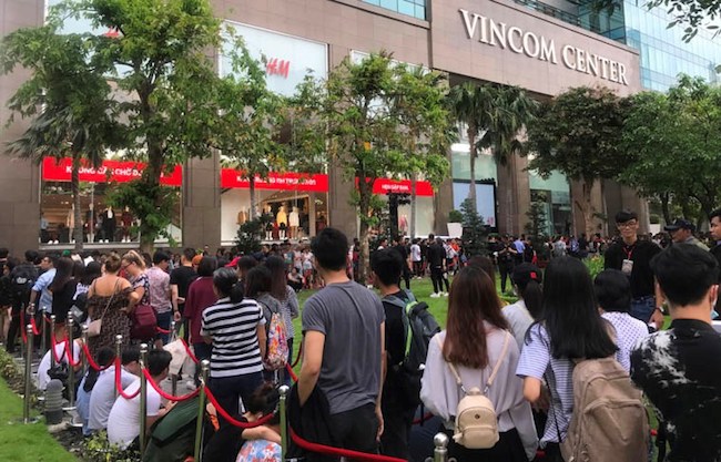 Hàng nghìn người xếp hàng chờ khai trương cửa hàng H&M đầu tiên ở Việt Nam. Ảnh: kienthuc.net