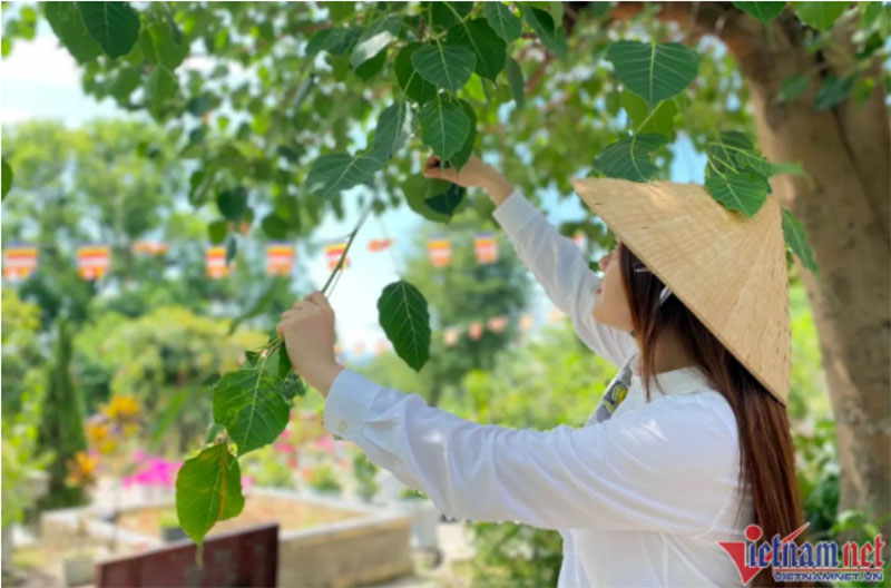Trong cơn mưa giông tại xã Đại Đồng (huyện Đại Lộc, Quảng Nam) chiều tháng 5, cô giáo dạy âm nhạc Nguyễn Như Sinh (SN 1989) đang ngồi chải những chiếc lá bồ đề đã ngâm được hơn 1 tháng.