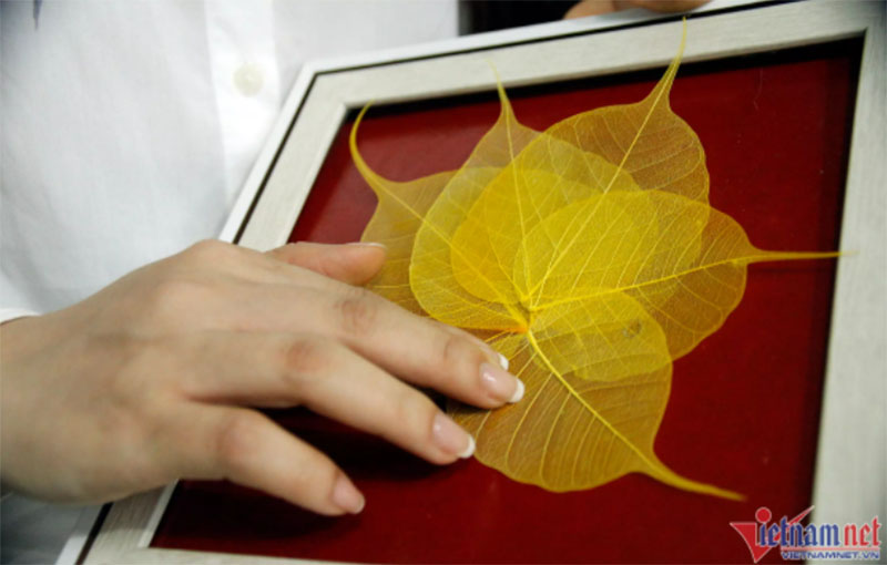 Hiện sản phẩm của cô có nhiều loại khác nhau, từ lá bồ đề in hình treo xe ô tô, lá bồ đề đặt trong ốp lưng điện thoại đến các bức tranh to, nhỏ đủ loại được ghép bằng chính các lá khô.