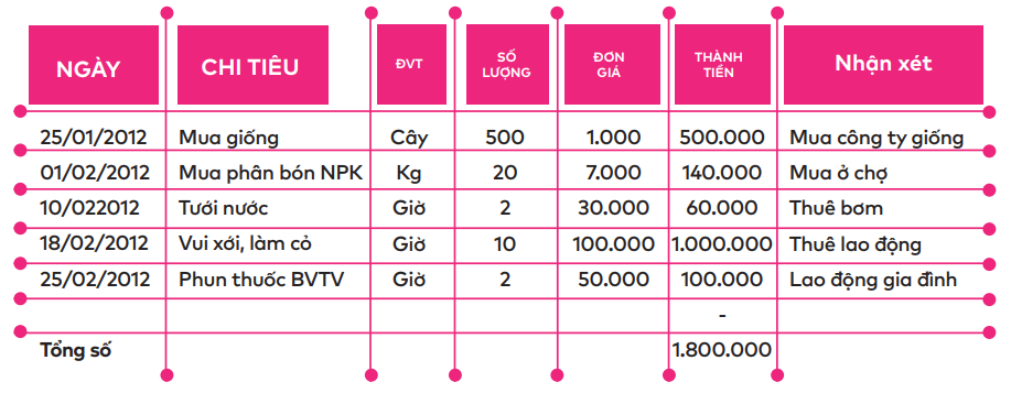 4. Hồ sơ chi tiêu cho sản xuất.