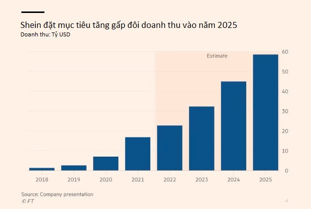 Cụ thể, trong một bài thuyết trình trước các nhà đầu tư gần đây, Shein nói rằng họ nhắm mục tiêu doanh thu hàng năm đạt 58,5 tỷ USD vào năm 2025, tăng từ mức 22,7 tỷ USD vào năm ngoái. Con số này sẽ vượt doanh thu hàng năm của cả HM và Zara gộp lại.