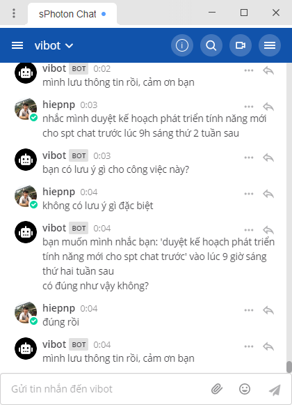 Chatbot của sPhoton tạo nhắc nhở và ghi nhớ lịch hẹn