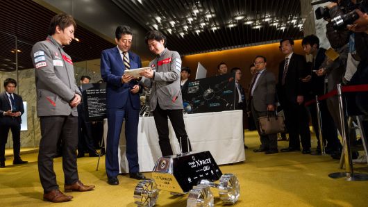 CEO giới thiệu về iSpace trước thủ tướng Nhật Bản Shinzo Abe trong một sự kiện do Chính phủ tổ chức. |