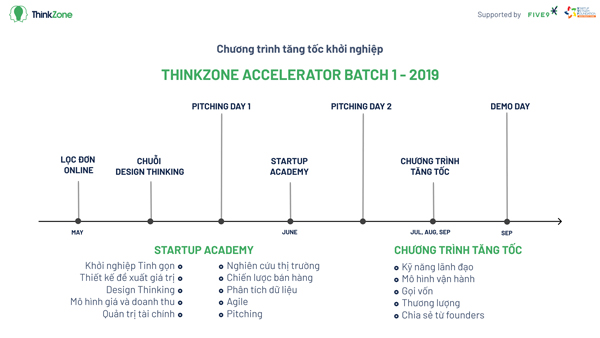 ThinkZone Accelerator 2019 kéo dài trong 4 tháng, tập trung vào các startup trong giai đoạn Hạt giống (Pre-seed/ Seed) thuộc các lĩnh vực như Tài chính công nghệ (Fintech), Công nghệ quảng cáo (Adtech), Công nghệ Marketing (Martech), Công nghệ trong F&B (Foodtech), Bán lẻ (Retail), E-commerce, Big-data.
