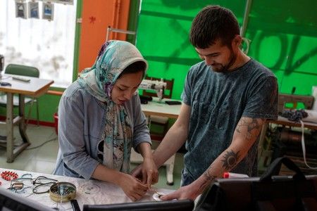 Chị Fariba chia sẻ các ý tưởng của mình với các nhà thiết kế người tị nạn khác.