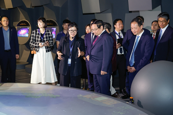 Trước khi tham dự diễn đàn, Thủ tướng Phạm Minh Chính và các đại biểu đã tham quan Trung tâm Điều khiển – Vận hành vệ tinh. Đây là một trong những hạng mục công nghệ cốt lõi, đảm nhiệm việc theo dõi trạng thái vệ tinh trên quỹ đạo, lập kế hoạch điều khiển, thu nhận dữ liệu và xử lý thông tin để phục vụ các bài toán ứng dụng trong quản lý tài nguyên, môi trường, phòng chống thiên tai, cũng như phục vụ quốc phòng – an ninh.